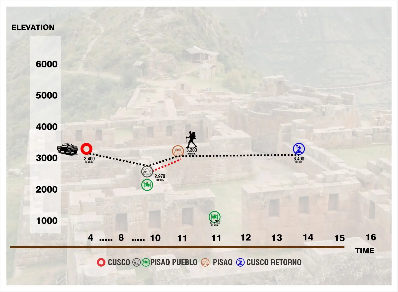 Morning departure from Cusco by tourist transport toward the Pisac area in the Sacred Valley.